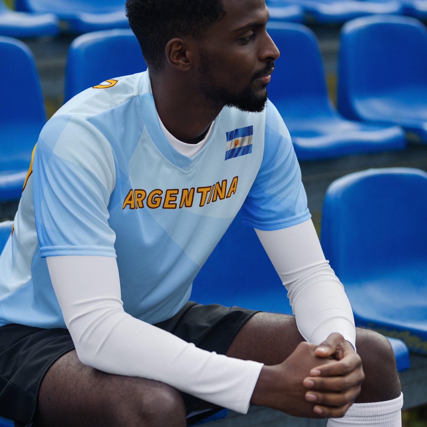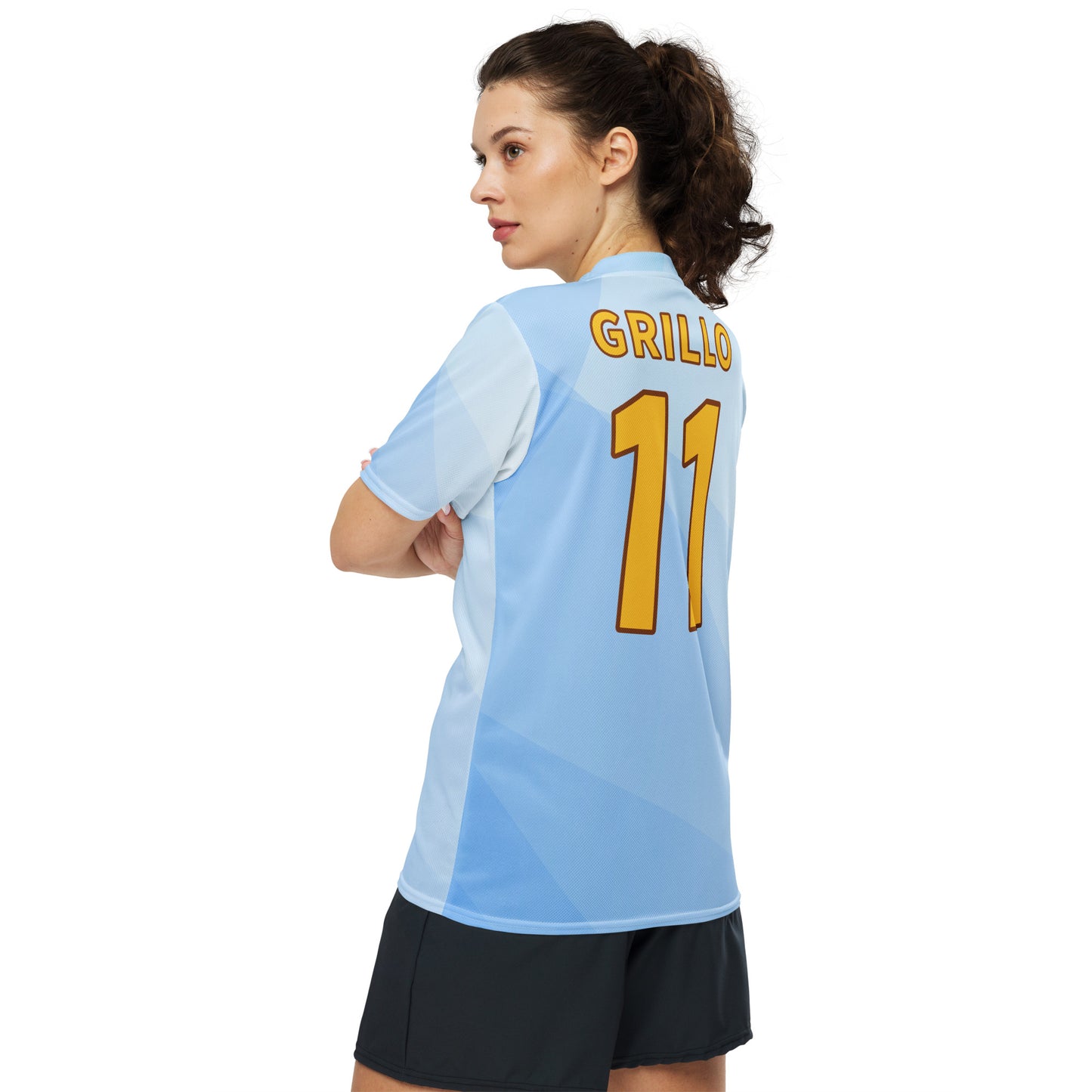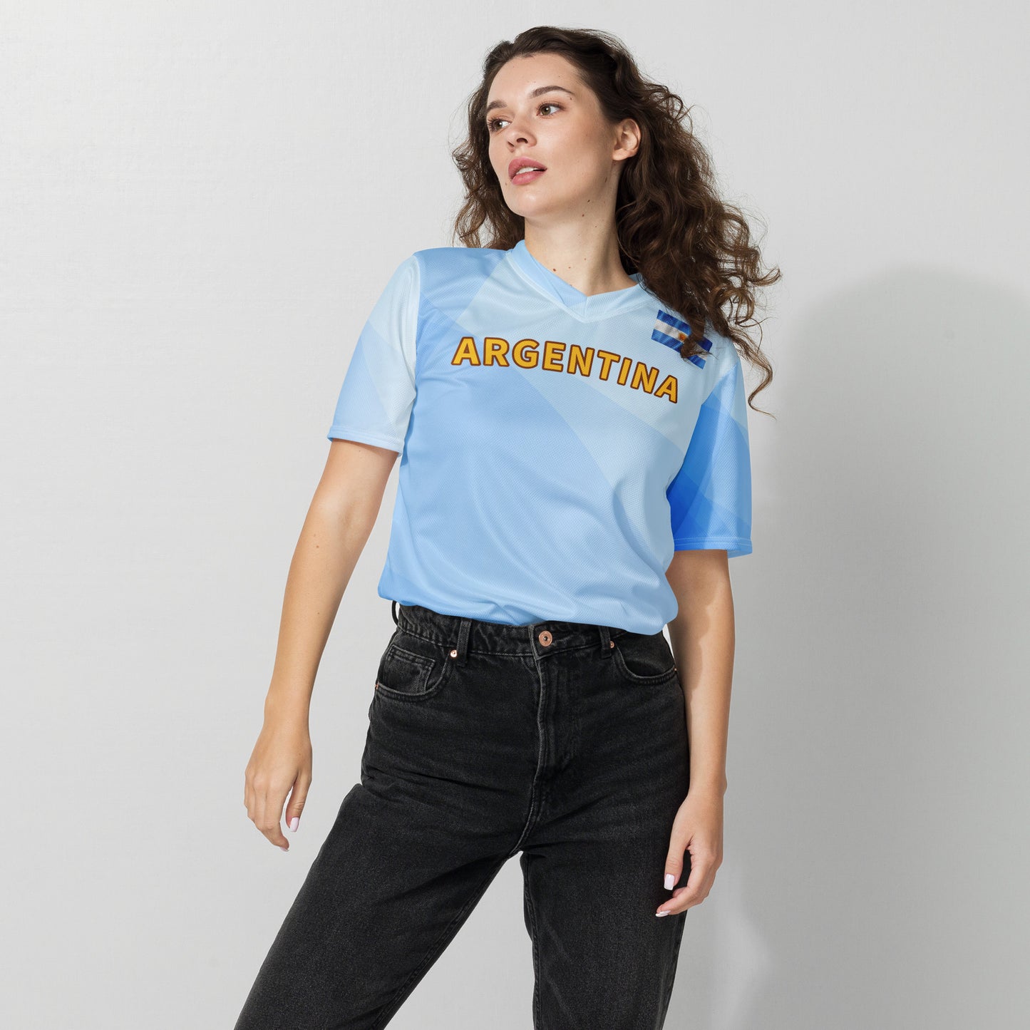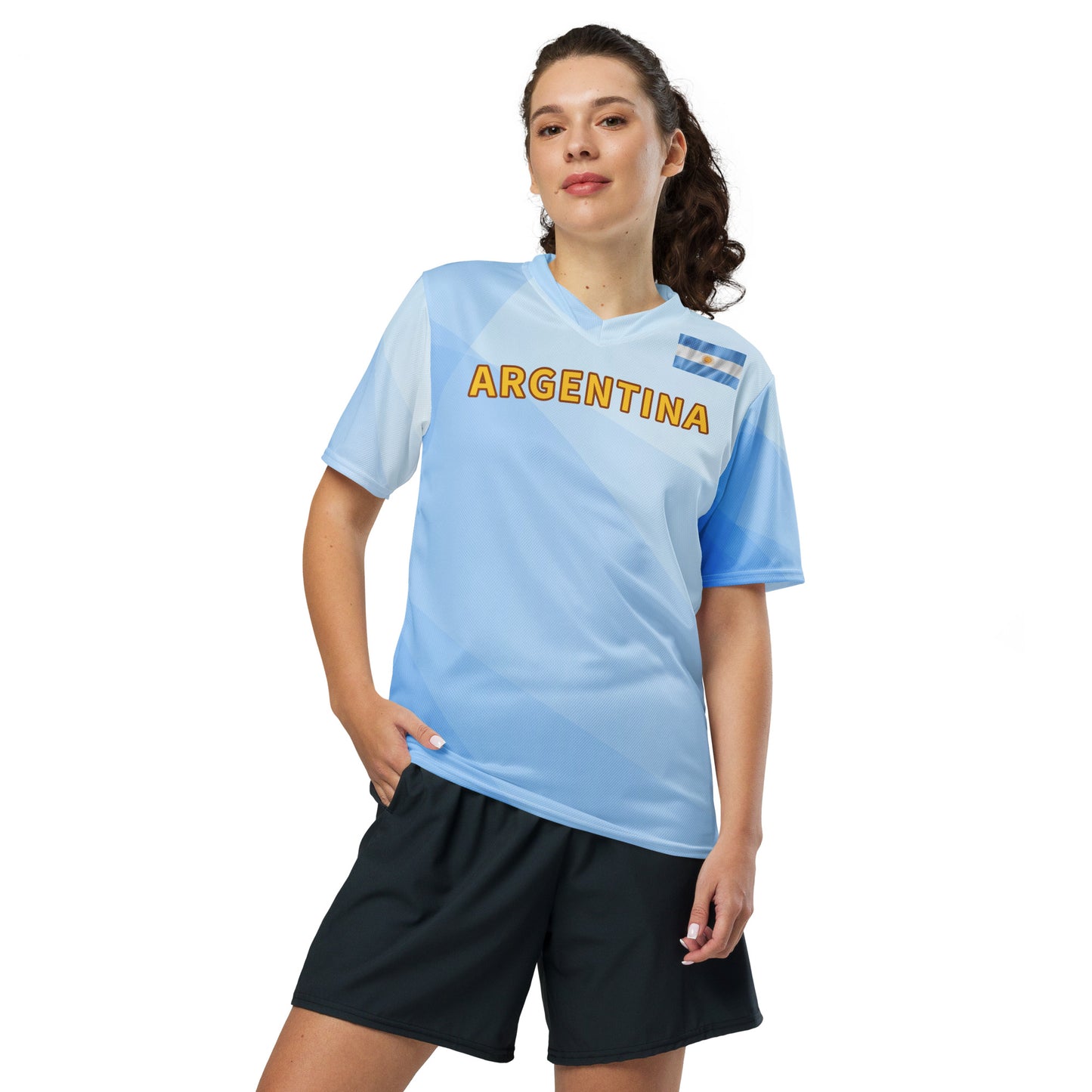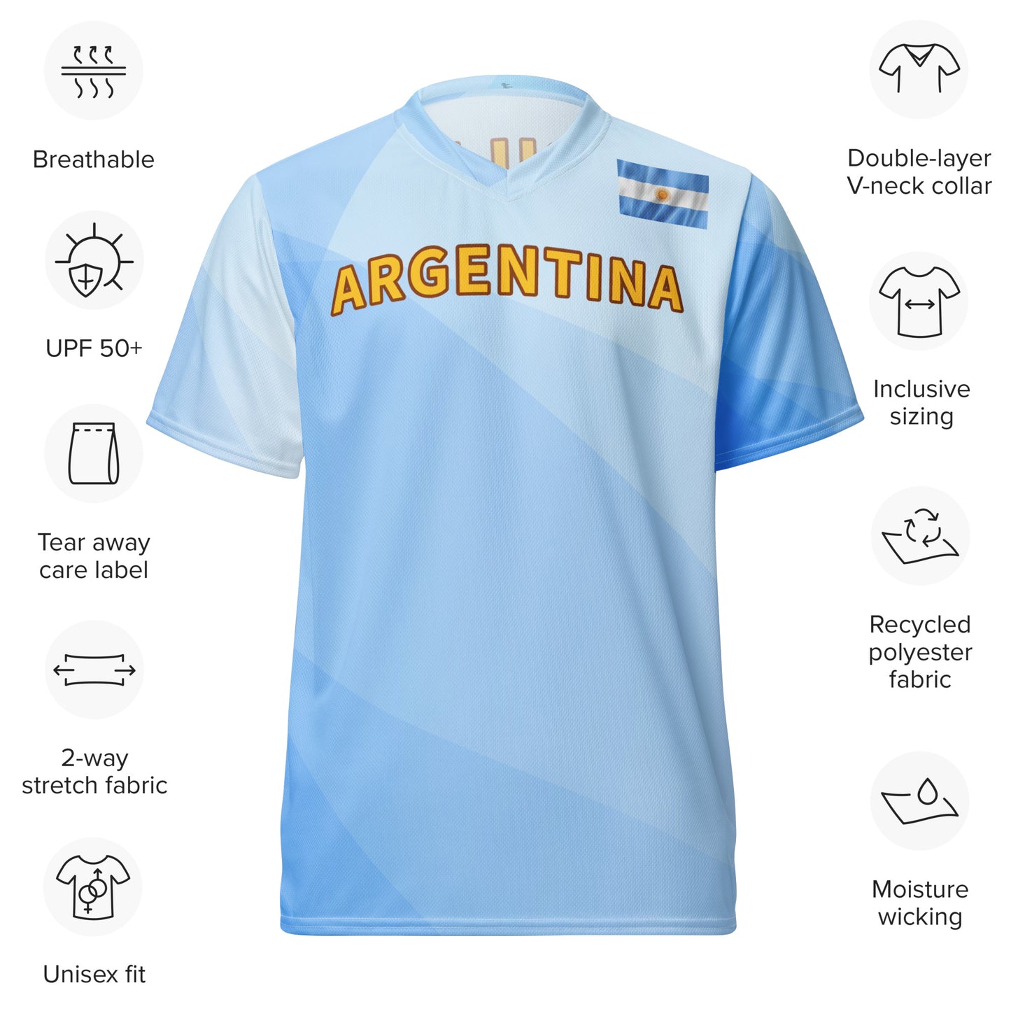Emiliano is a golfer from Argentina who turned professional in 2011. His customized tee is made of 100% recycled polyester fabric. This jersey is breathable, lightweight, and has a double-layered V-neck collar that creates a premium look. Moisture-wicking and quick-drying fabric made for the most passionate fans.