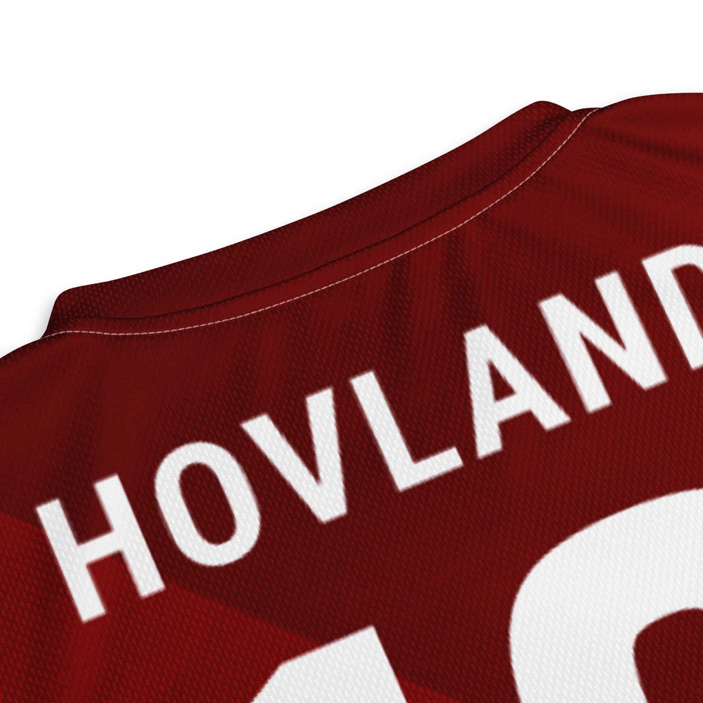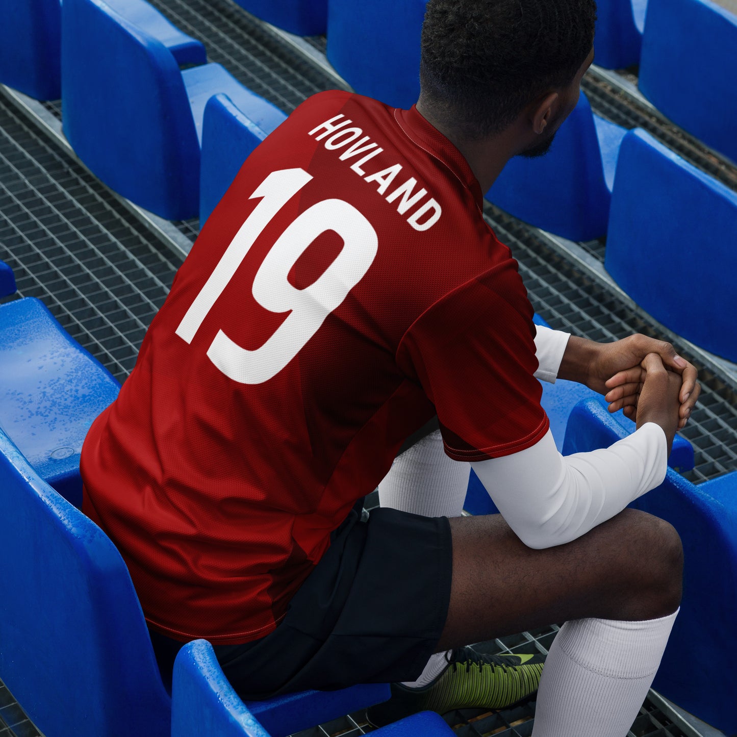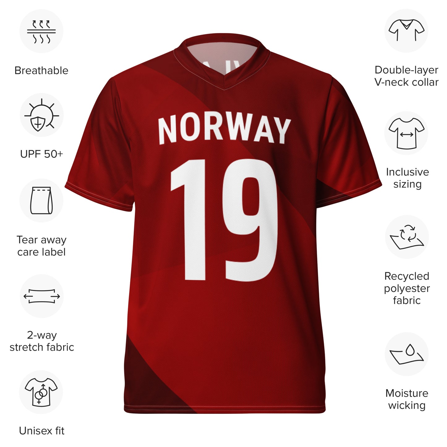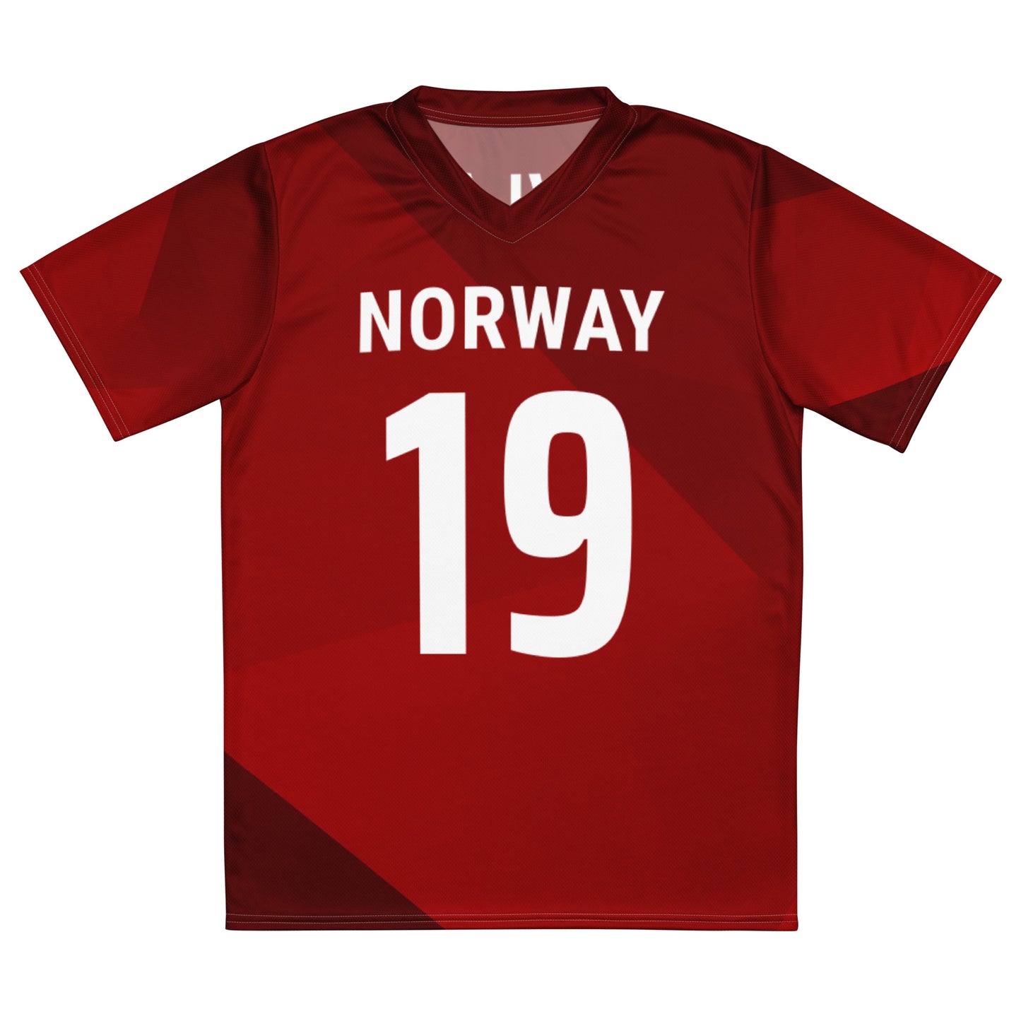 Viktor is a Norwegian golfer who turned professional in 2019. His customized tee is made of 100% recycled polyester fabric. This jersey is breathable, lightweight, and has a double-layered V-neck collar that creates a premium look. Moisture-wicking and quick-drying fabric made for the most passionate fans.
