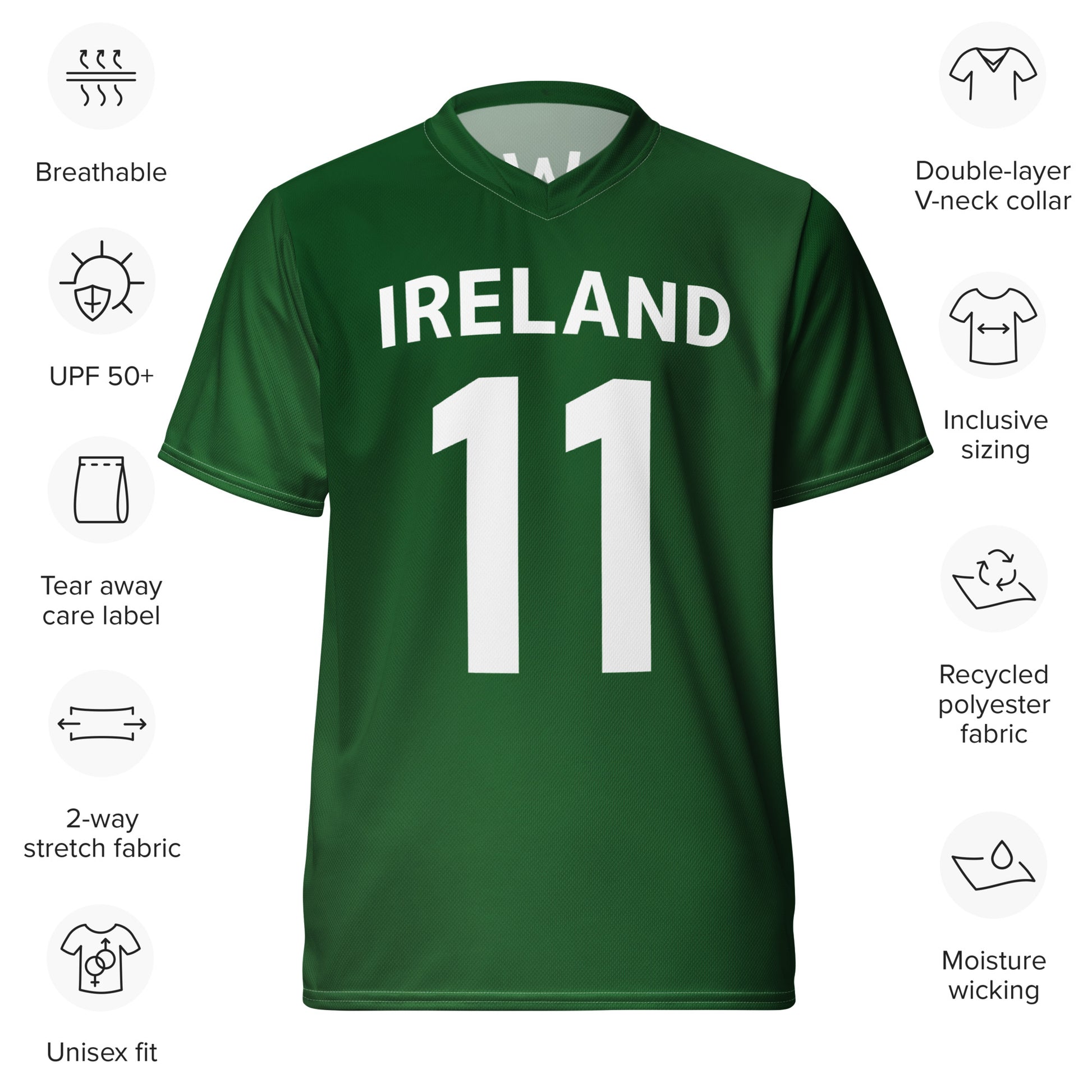 Seamus is an Irish golfer who turned professional in 2011. His customized tee is made of 100% recycled polyester fabric. This jersey is breathable, lightweight, and has a double-layered V-neck collar that creates a premium look. Moisture-wicking and quick-drying fabric made for the most passionate fans.