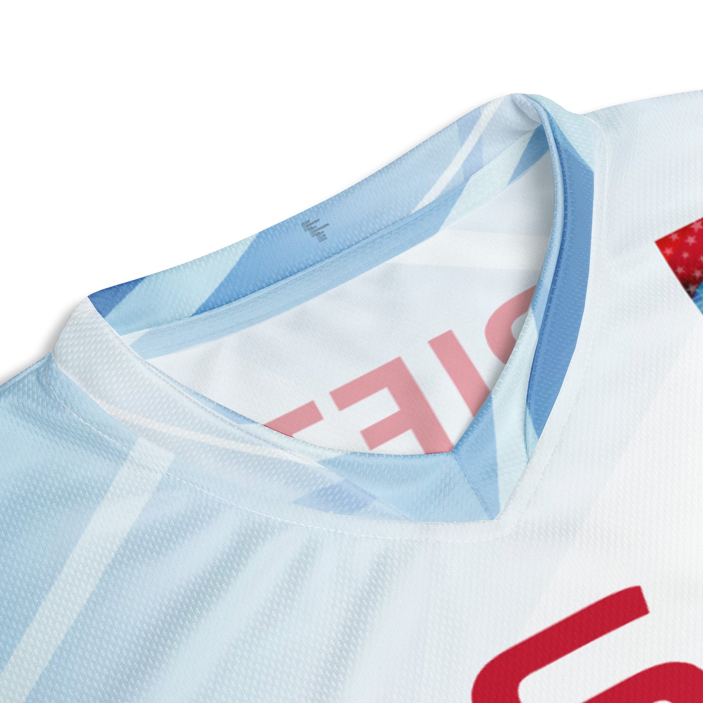 Jordan is an American golfer who turned professional in 2012. His customized tee is made of 100% recycled polyester fabric. This jersey is breathable, lightweight, and has a double-layered V-neck collar that creates a premium look. Moisture-wicking and quick-drying fabric made for the most passionate fans.